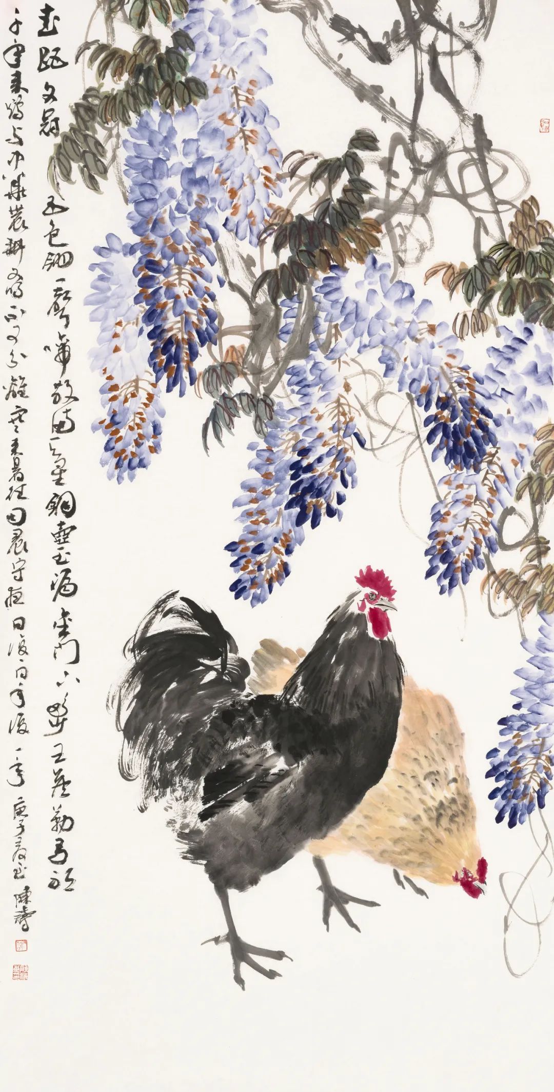 Q:陈老师您好!非常感谢您接受我们的专访!本次专访的主题是“美从何处寻”。艺术家对美的感悟影响着他的创作风格。通过对作品的了解,我们发现您的作品中所呈现的花鸟是极富生活气息的,并且向观者传递了一种平和隽永的感觉。可以谈一谈您这种灵感和感觉来源于哪里吗? 陈: 首先我画的题材,基本上都是生活中的题材,很多都是我们见过和熟悉的场景。因为从花鸟画本身来讲,就有一种寓意和精神的寄托。像明清时代的花鸟画,它更多的是梅兰竹菊君子题材,画家可以在书斋里边去完成这些作品。现在咱们的生活环境改变了,工作环境也和古代不一样,有更多和生活接触的机会。所以题材基本上是从生活中来的,把生活中熟悉的场景记录下来,然后把它变成作品。再比如一些植物题材和动物题材,都是大家生活中常见的,总的来说是把生活中的一些比较鲜活事物记录下来,再用中国画的笔墨语言把它表现。观察感受的这种创作方式一直到现在,也还是艺术创作的大道。我这几年也一直在走这条路,就是让生活和创作紧密联系。Q:看了您的视频号,其中不仅有创作过程的记录,还有石榴的图片。您有一系列描绘石榴的作品,我们看到有的石榴不是那种鲜红的大石榴,还有一些有瑕疵的、形状各异的石榴;也看到您有母鸡系列的画作,石榴和母鸡好像在您的作品中经常出现,请问一下这两种意象在您心中是怎样的美的存在? 陈:这主要和个人生活经历有关系。在我小时候,老家院子的墙角里边有个鸡笼子,里面就养着几只鸡。那个年代养鸡,就是为了吃鸡蛋,这也是最朴素的一种生活场景。有时候放学回家,我就抓上两把米,给鸡喂食,很富有一种生活的乐趣,掏出热乎乎的鸡蛋,放在手上,也是很鲜活的一种生活体验。关于石榴,除了老家有棵石榴树,与之感情较深之外,再一个就是和我第一次的工作经历有关系。2003年,刚刚大学毕业的我去了枣庄学院工作。枣庄的峄城有一个石榴园,这个石榴园种植面积非常大,关键是它里边有很多数百年的老石榴树。老石榴树生长的苍劲感是非常震撼的,它的枝干是拧着走的,百年树干的质感和感沧桑感非常能打动人。一到秋天,就去画画,写生,后来离开枣庄学院,就来到济南工作,但是基本上每年都会去到石榴园里采风,画一些关于石榴的画作。但是,我后来发现真正的画整株石榴的人相对的少。在枣庄看了一些大石榴之后,也生出了一个想法,就是画老石榴树,把石榴树的苍劲和秋天丰硕的场景一同表现出来,所以说,这几年也画了几张,一直在探索和尝试中。Q:您作品中松鼠和翠鸟这类意象都传达出强劲的生命力,每幅作品的动物又是活灵活现、鲜明可爱的。可否与我们谈一谈,创作这几幅画时的灵感和心境吗?您是如何捕捉动物这种动态的感觉的? 陈:实际上一个画家在画动物和植物题材的时候,除了观察自然之外,还要学会创造形象,要把你想表达的动物的形象,处理得更加具有典型性。不一定是拘泥于自然形象,要把这种自然形象升华。汉代的画像和汉代石刻的一些形象,它实际上就是一种创造的形象,自然界是没有这种形象的。包括秦汉时期的一些青铜器,比如说秦汉时期用动物形象做的一些青铜灯。我觉得这也是我们在教学中一直倡导的,一定要发挥想象力。在自然的基础上升华,让自己的艺术形象更加典型化,更能打动人,形象的魅力是无穷的。